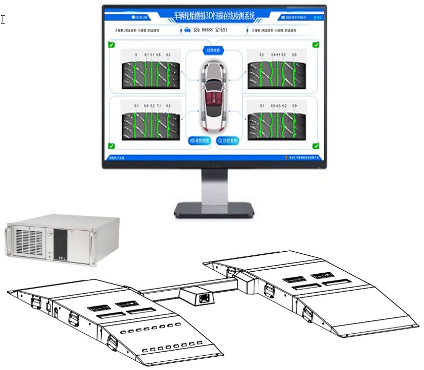 本系統(tǒng)是由北京匯豐隆智能科技有限公司開(kāi)發(fā)并擁有自主知識(shí)產(chǎn)權(quán)的一款全自動(dòng)化乘用車輪胎磨損3D掃描在線檢測(cè)系統(tǒng)。車主/司機(jī)僅需駕駛車輛從檢測(cè)系統(tǒng)駛過(guò),檢測(cè)系統(tǒng)即可快速、準(zhǔn)確的檢測(cè)出車輛輪胎的磨損狀態(tài)并可在顯示屏或及智能電視上顯示出本次檢測(cè)結(jié)果。檢測(cè)報(bào)告具有精度高、速度快、顯示界面信息齊全等特色。同時(shí),檢測(cè)報(bào)告記錄了被檢測(cè)車輛的車牌及車型信息,便于日后方便準(zhǔn)確查詢及對(duì)比。